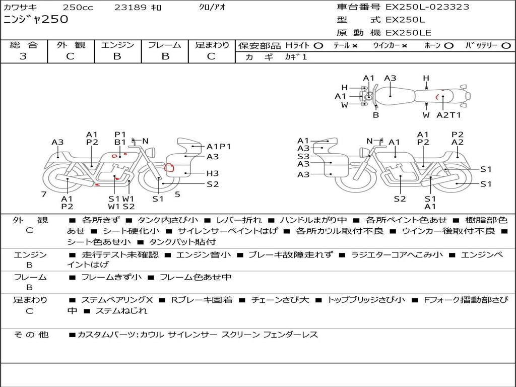 | Номер рамы / VIN | EX250L-023323 |