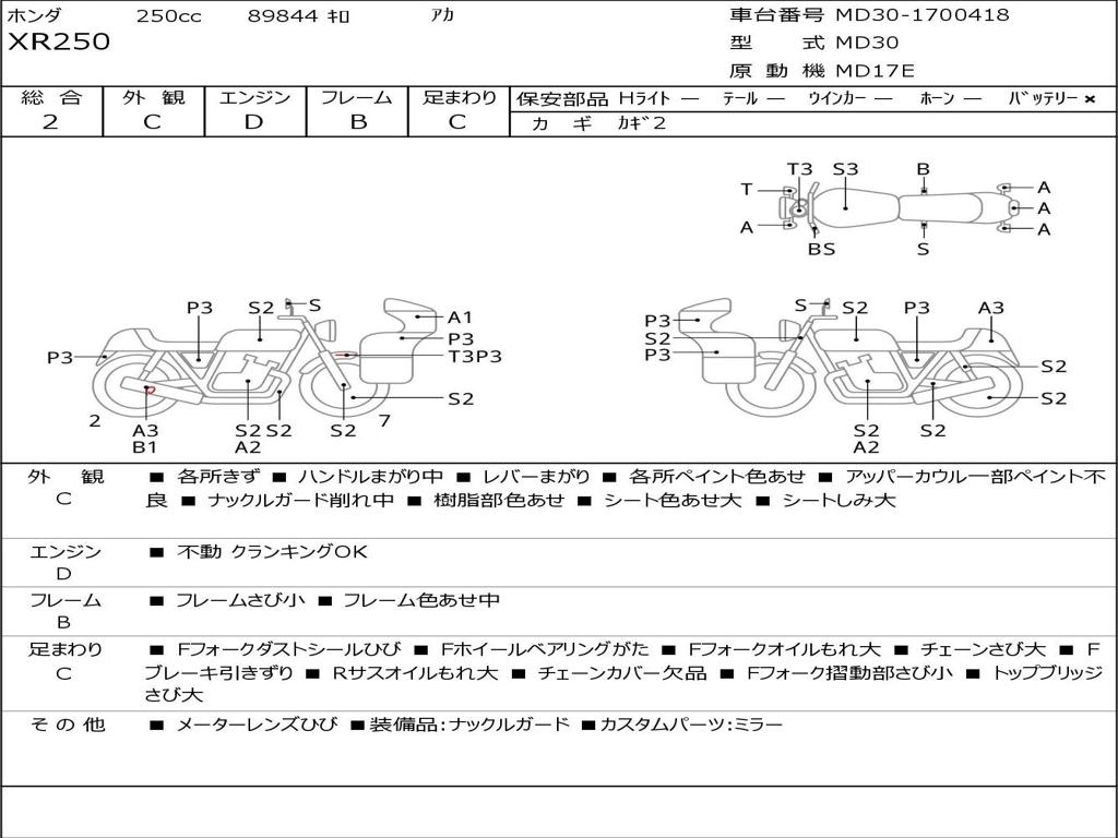 | Номер рамы / VIN | MD30-1700418 |