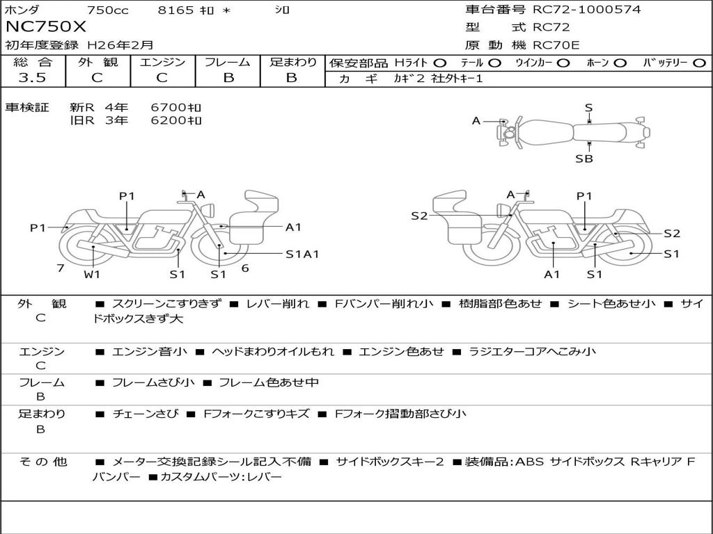 | Номер рамы / VIN | RC72-1000574 |