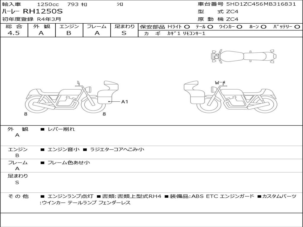 | Номер рамы / VIN | 5HD1ZC456MB316831 |