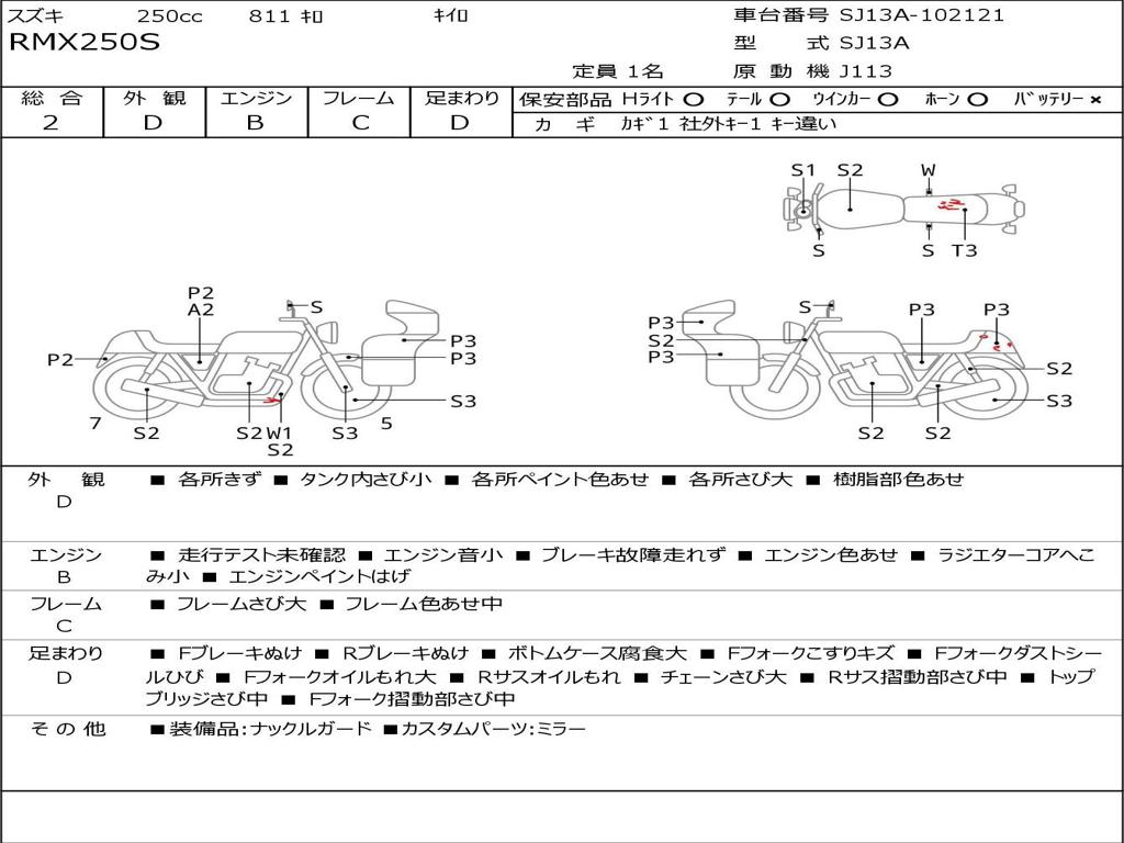 | Номер рамы / VIN | SJ13A-102121 |