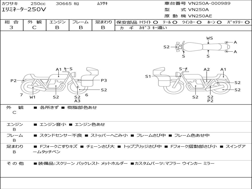 | Номер рамы / VIN | VN250A-000989 |