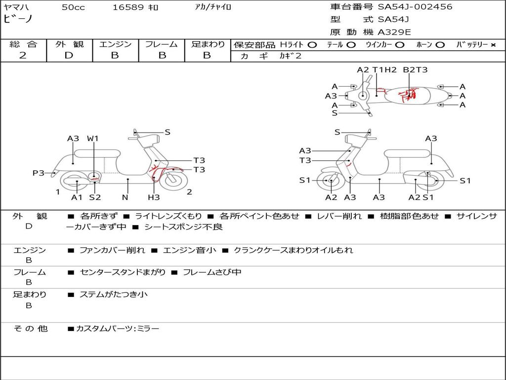 | Номер рамы / VIN | SA54J-002456 |