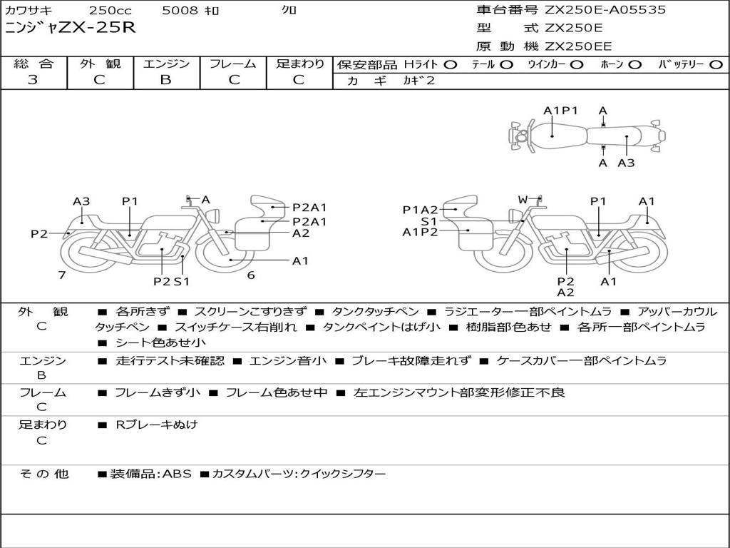 | Номер рамы / VIN | ZX250E-A05535 |