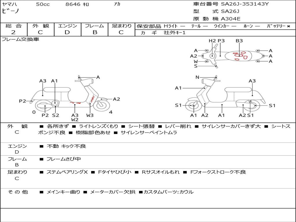 | Номер рамы / VIN | SA26J-353143Y |