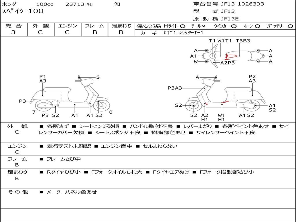 | Номер рамы / VIN | JF13-1026393 |