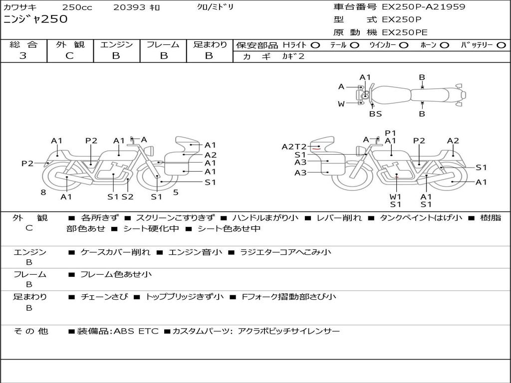 | Номер рамы / VIN | EX250P-A21959 |