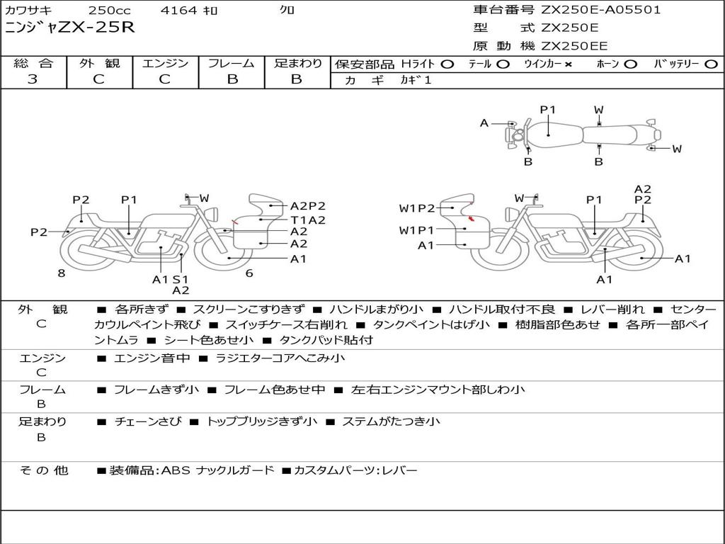 | Номер рамы / VIN | ZX250E-A05501 |
