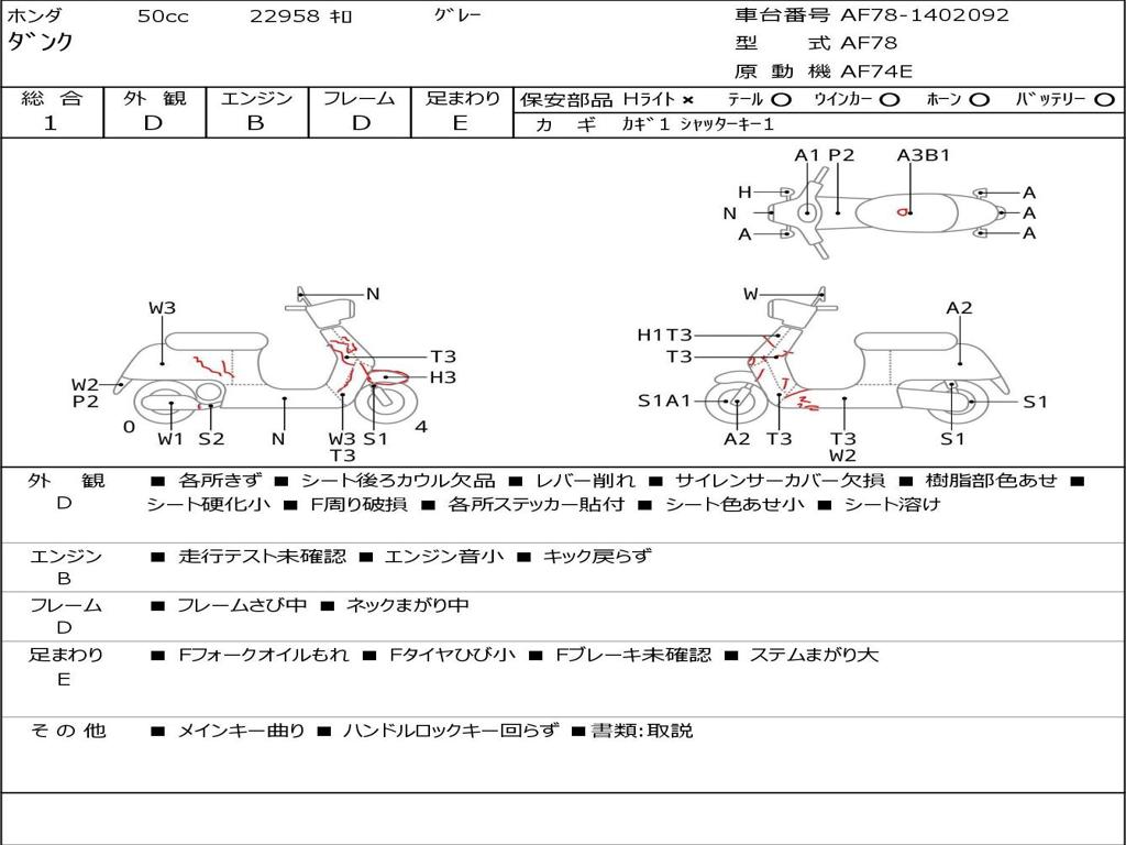 | Номер рамы / VIN | AF78-1402092 |