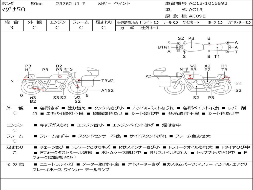 | Номер рамы / VIN | AC13-1015892 |