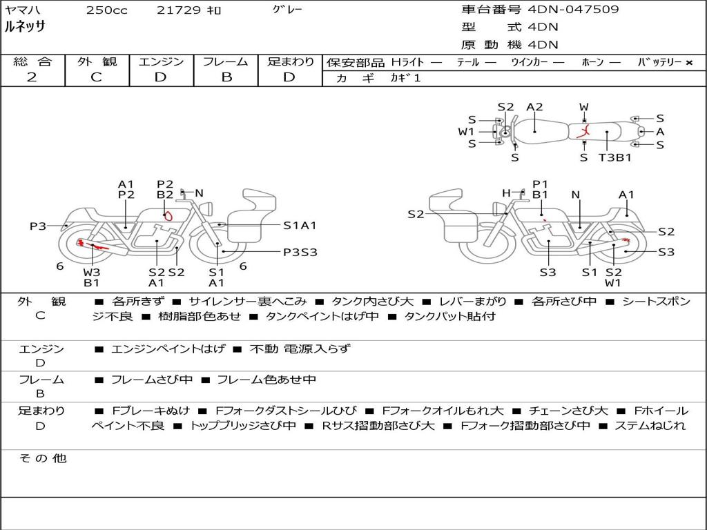 | Номер рамы / VIN | 4DN-047509 |