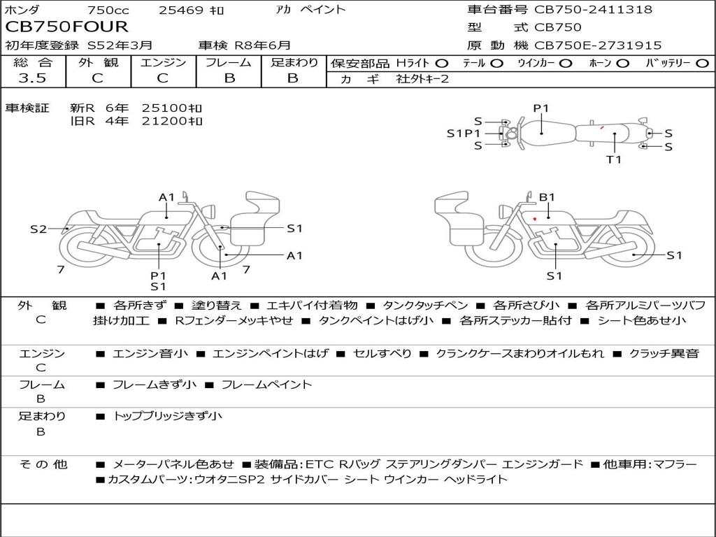 | Номер рамы / VIN | CB750-2411318 |
