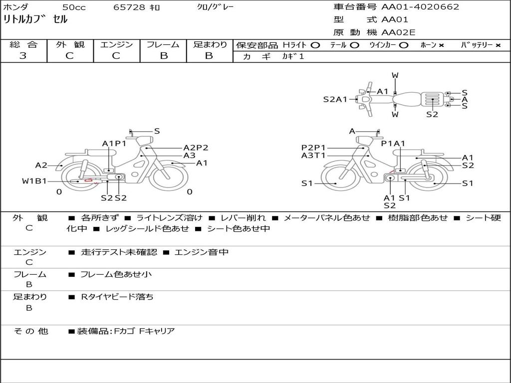 | Номер рамы / VIN | AA01-4020662 |