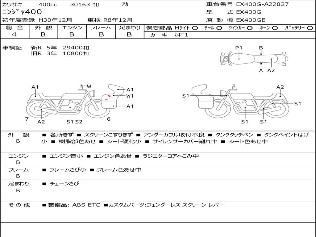 | Номер рамы / VIN | EX400G-A22827 |