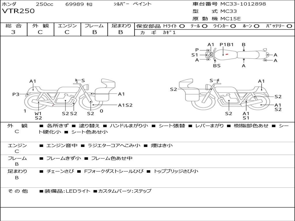 | Номер рамы / VIN | MC33-1012898 |