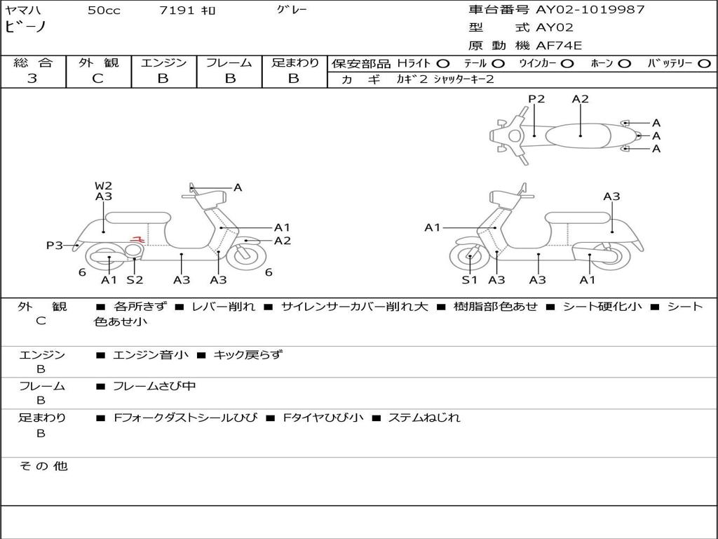 | Номер рамы / VIN | AY02-1019987 |