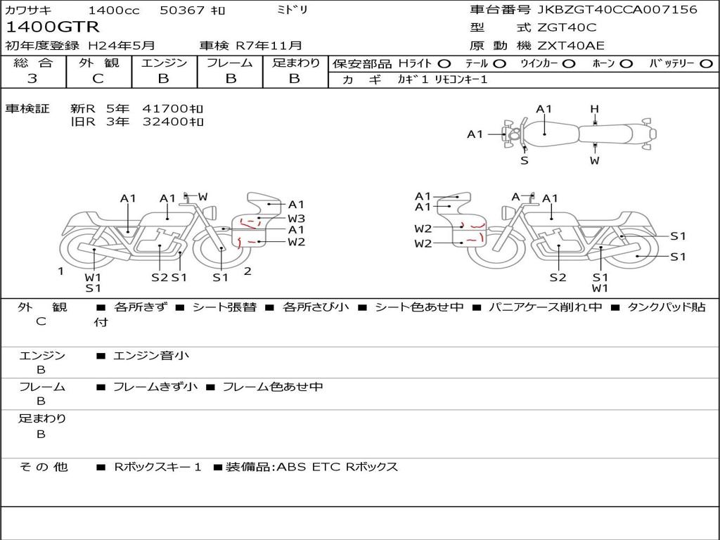 | Номер рамы / VIN | JKBZGT40CCA007156 |