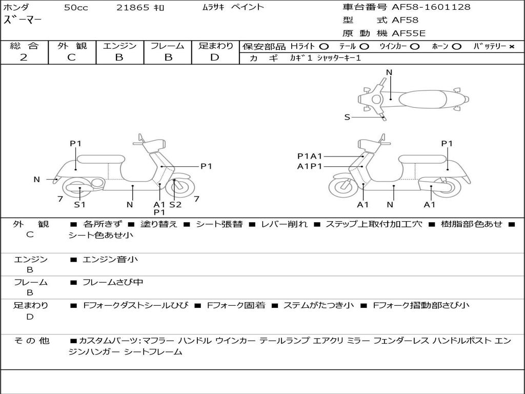 | Номер рамы / VIN | AF58-1601128 |