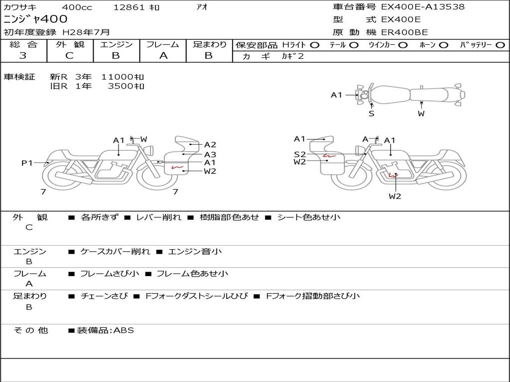| Номер рамы / VIN | EX400E-A13538 |