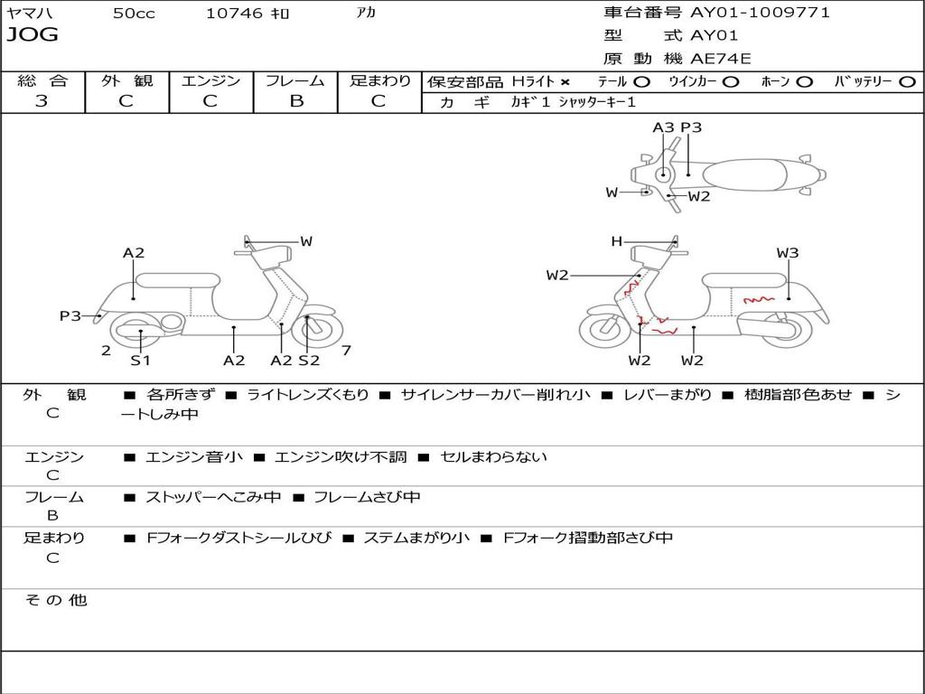 | Номер рамы / VIN | AY01-1009771 |