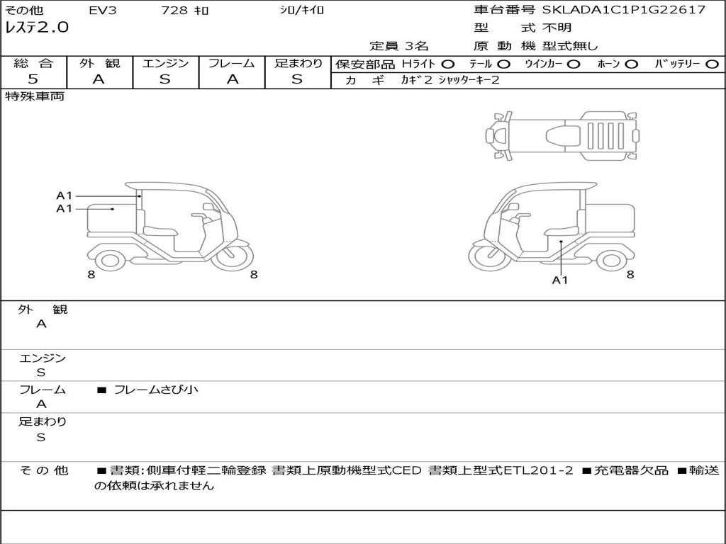 | Номер рамы / VIN | SKLADA1C1P1G22617 |