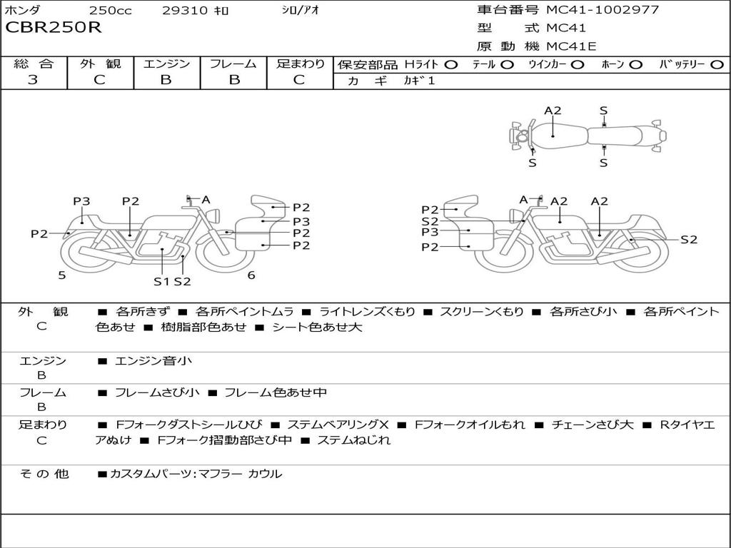 | Номер рамы / VIN | MC41-1002977 |