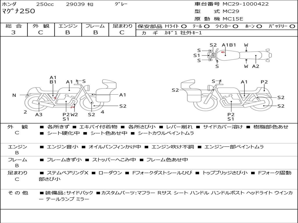 | Номер рамы / VIN | MC29-1000422 |