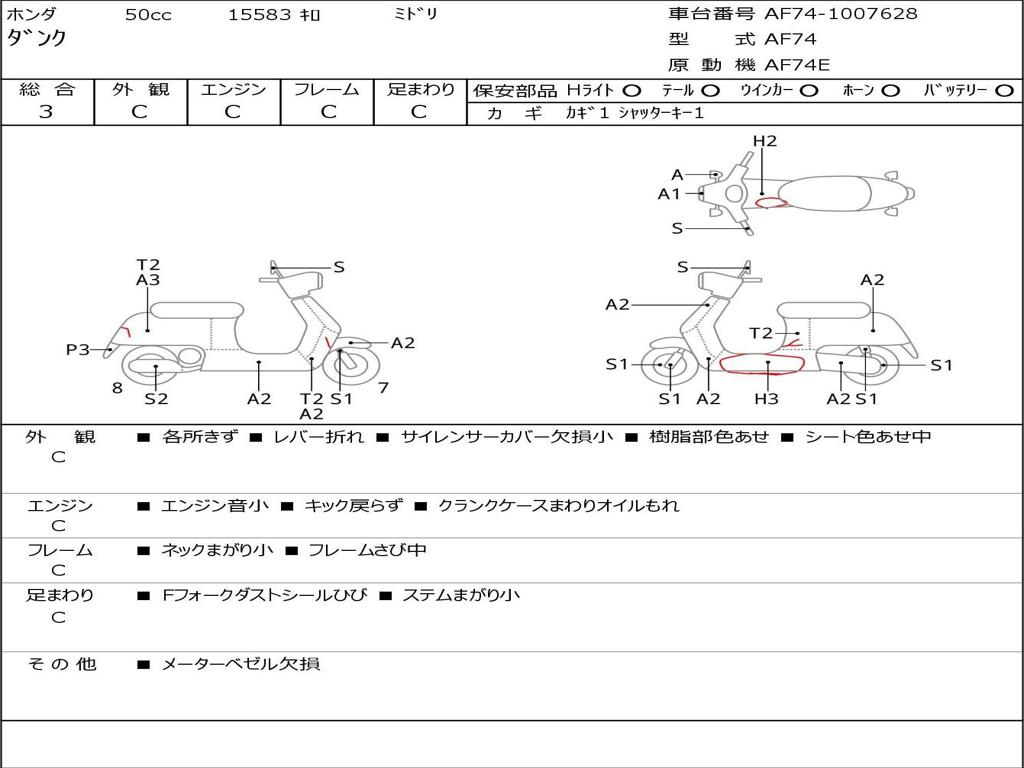 | Номер рамы / VIN | AF74-1007628 |