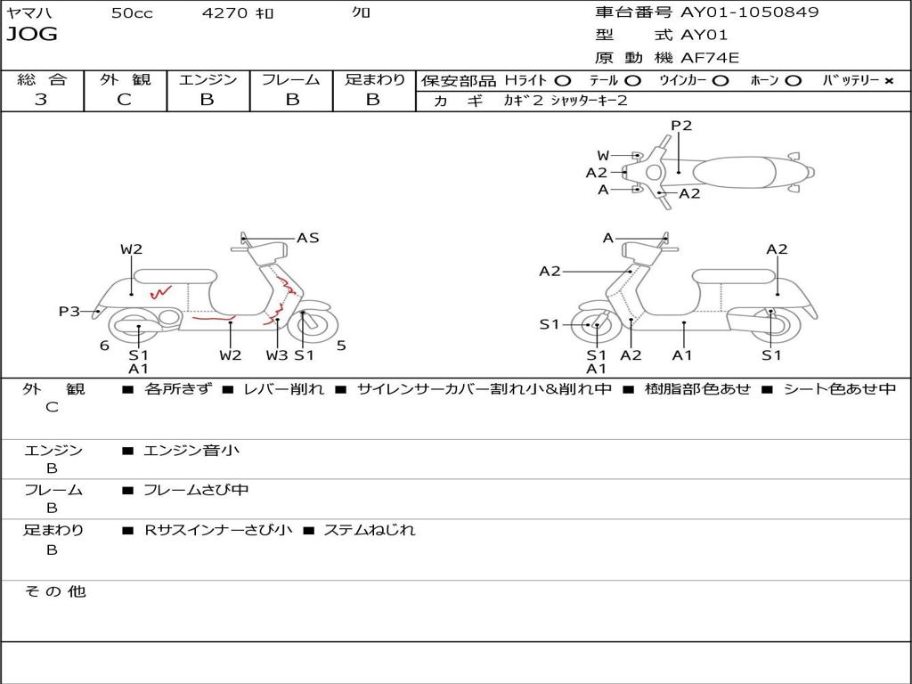 | Номер рамы / VIN | AY01-1050849 |