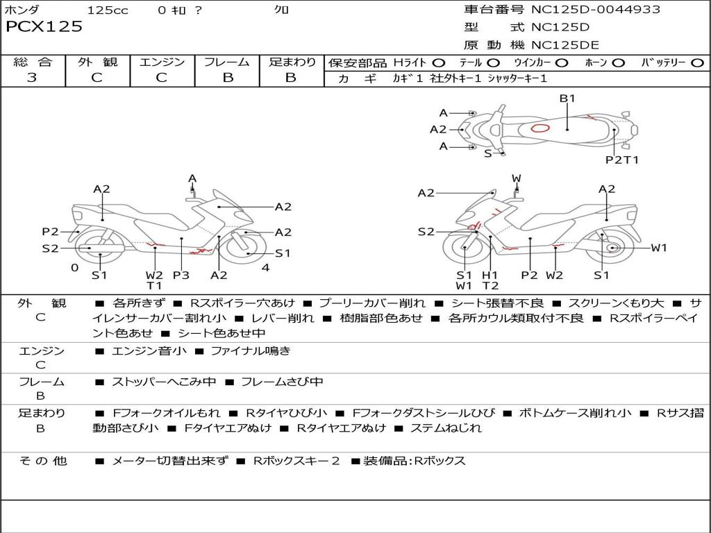 | Номер рамы / VIN | NC125D-0044933 |