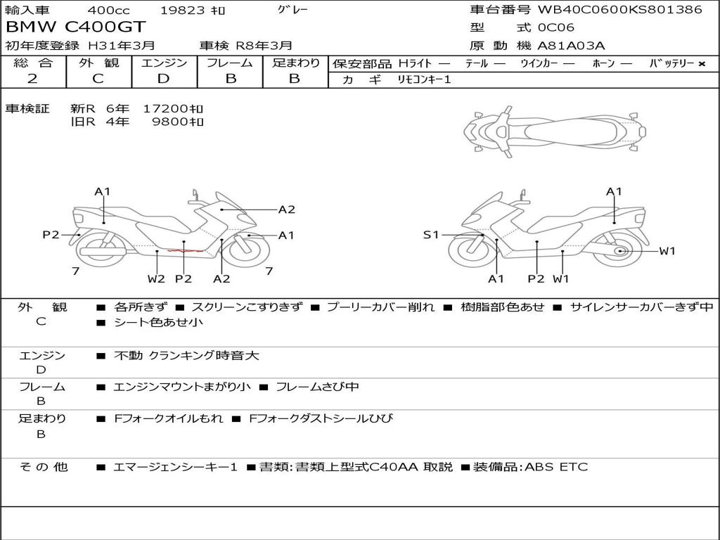 | Номер рамы / VIN | WB40C0600KS801386 |