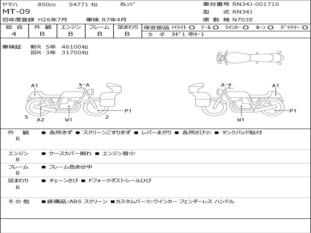 | Номер рамы / VIN | RN34J-001710 |