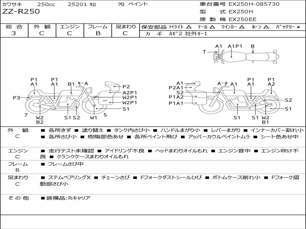 | Номер рамы / VIN | EX250H-085730 |