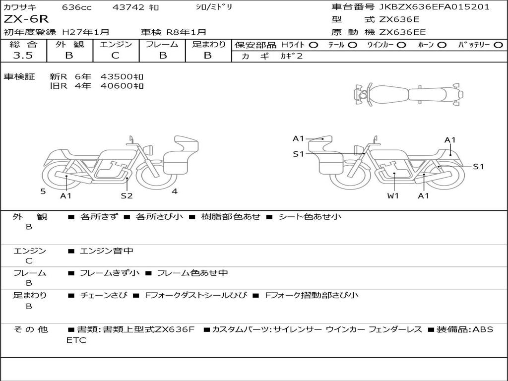 | Номер рамы / VIN | JKBZX636EFA015201 |
