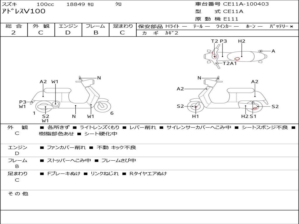 | Номер рамы / VIN | CE11A-100403 |