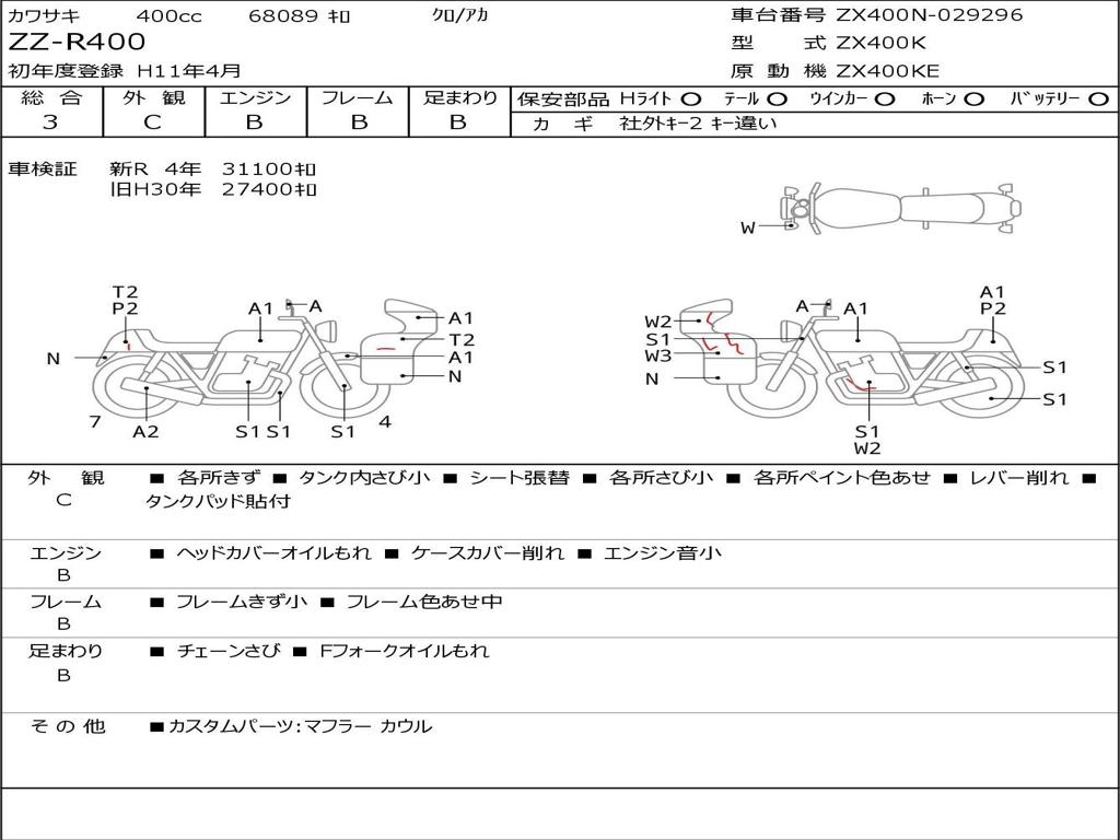 | Номер рамы / VIN | ZX400N-029296 |