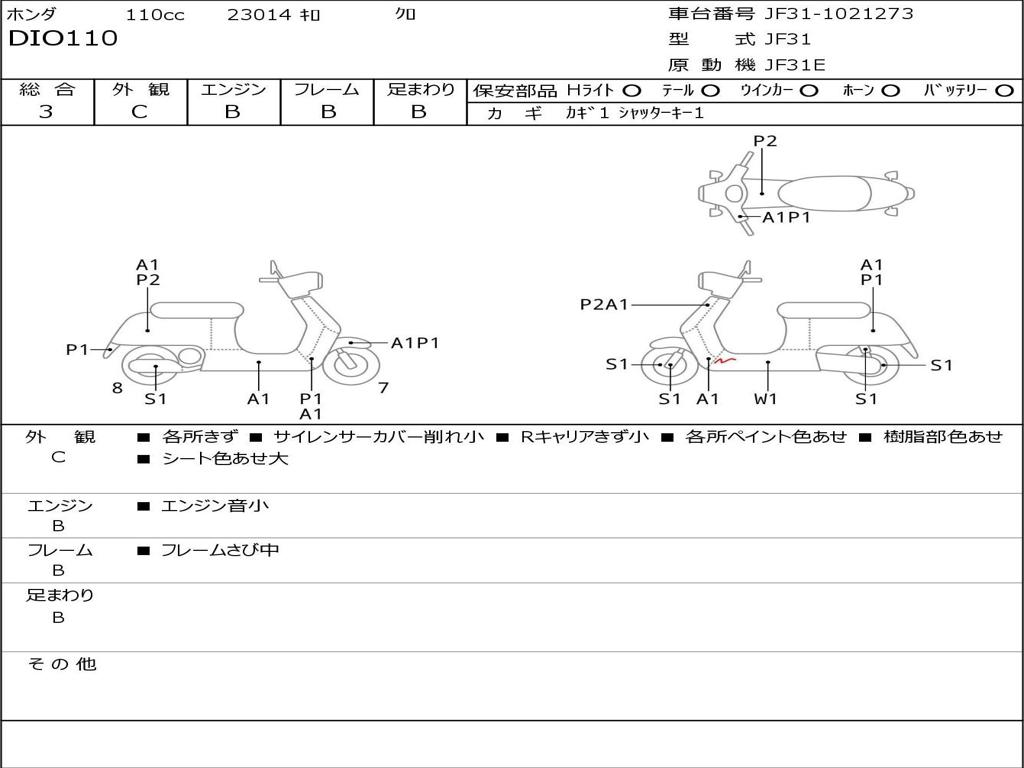 | Номер рамы / VIN | JF31-1021273 |