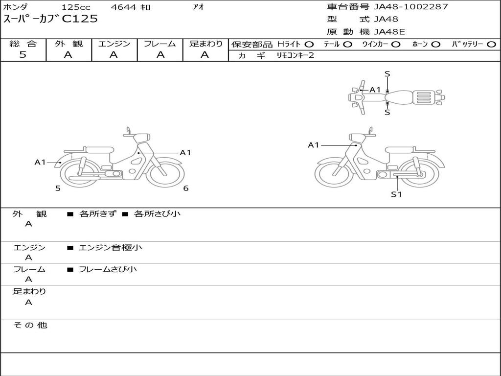 | Номер рамы / VIN | JA48-1002287 |