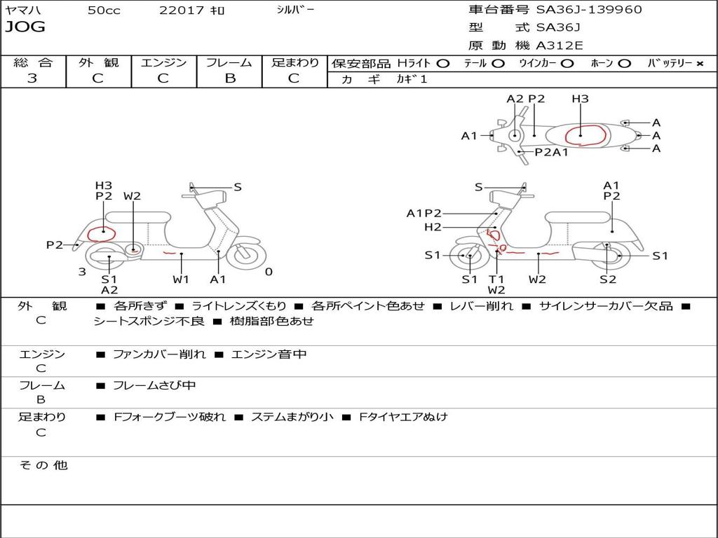 | Номер рамы / VIN | SA36J-139960 |