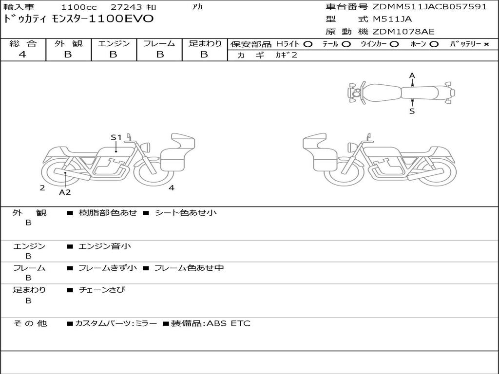 | Номер рамы / VIN | ZDMM511JACB057591 |