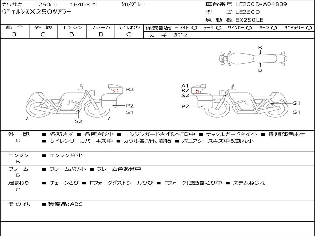 | Номер рамы / VIN | LE250D-A04839 |