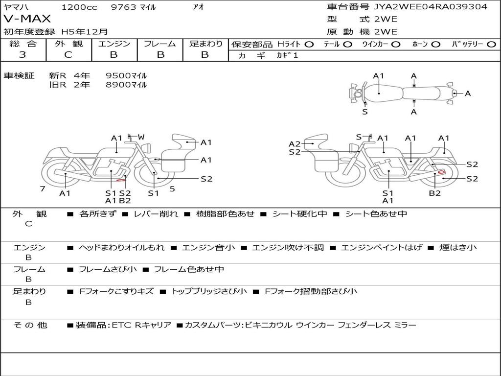 | Номер рамы / VIN | JYA2WEE04RA039304 |