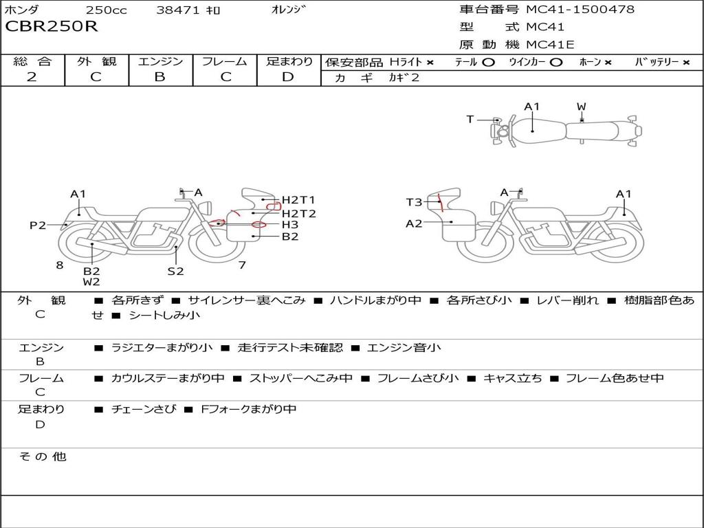 | Номер рамы / VIN | MC41-1500478 |