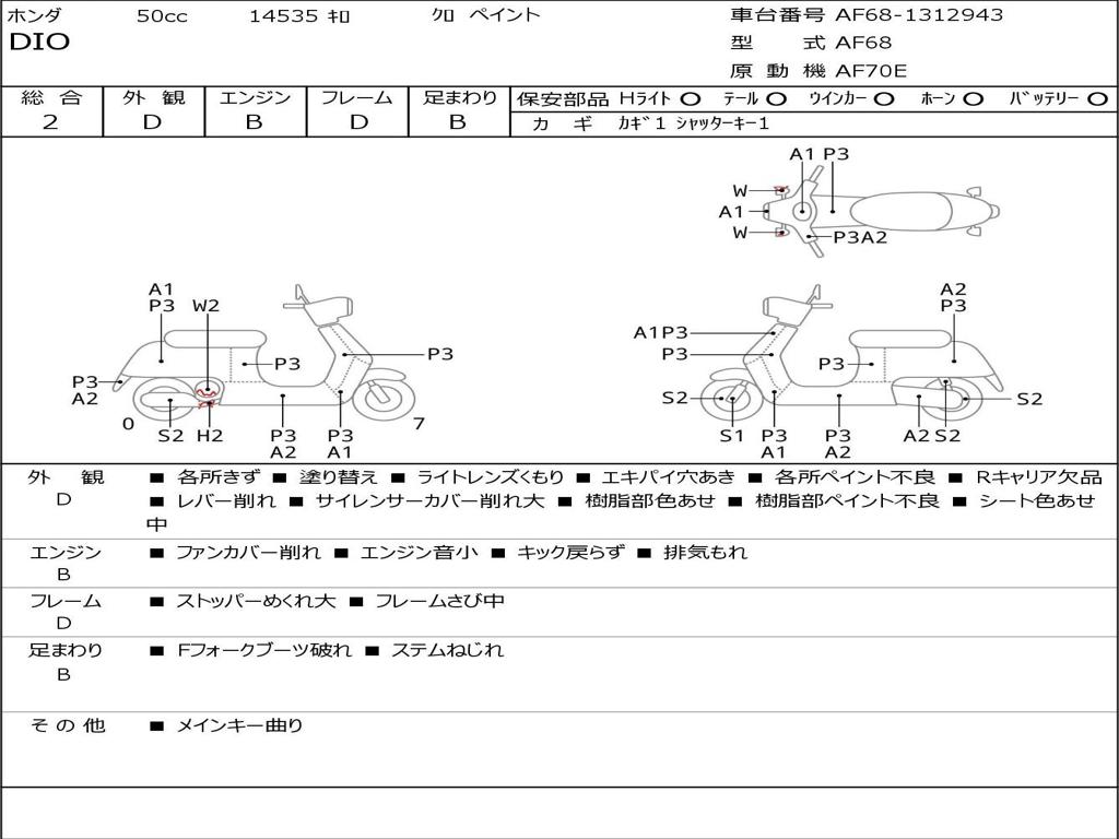 | Номер рамы / VIN | AF68-1312943 |