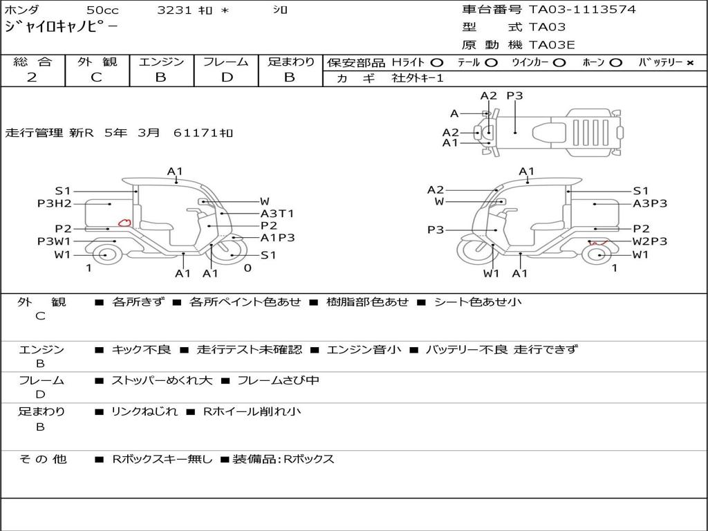 | Номер рамы / VIN | TA03-1113574 |