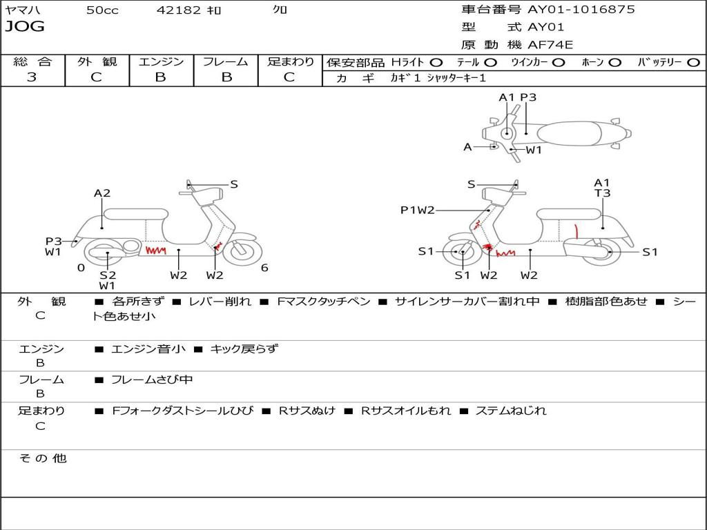 | Номер рамы / VIN | AY01-1016875 |