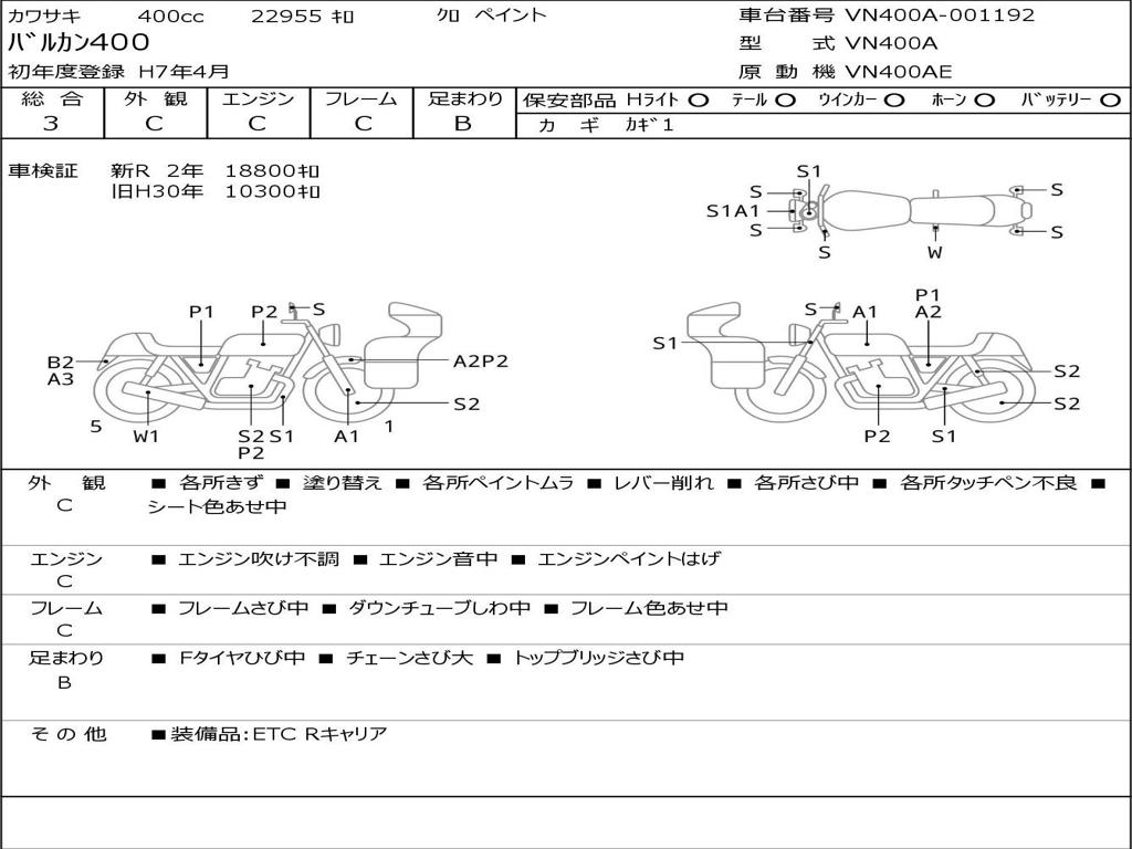| Номер рамы / VIN | VN400A-001192 |