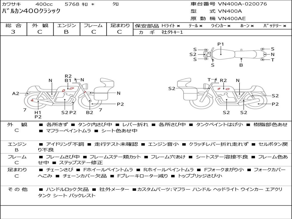 | Номер рамы / VIN | VN400A-020076 |