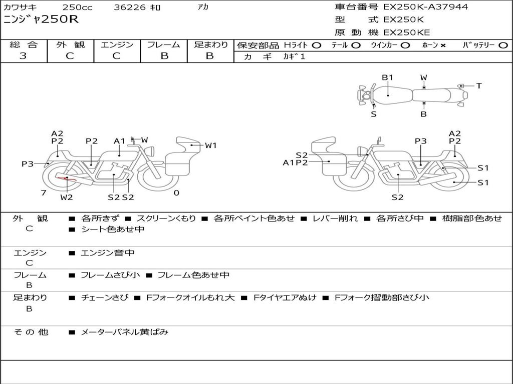 | Номер рамы / VIN | EX250K-A37944 |