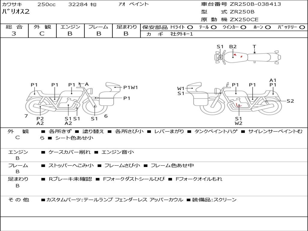 | Номер рамы / VIN | ZR250B-038413 |